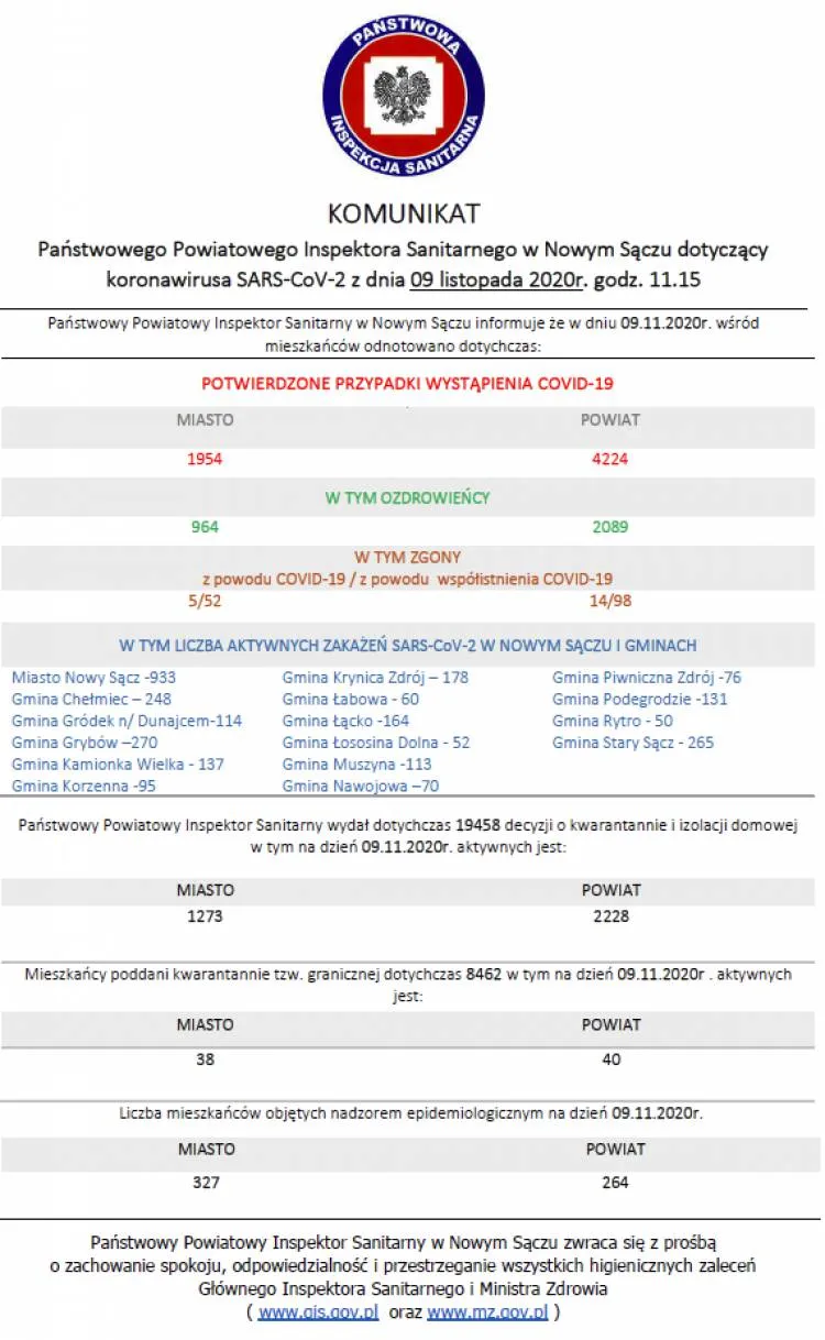 Subregion sądecki: Ponad 300 nowych zakażeń i 281 ozdrowieńców