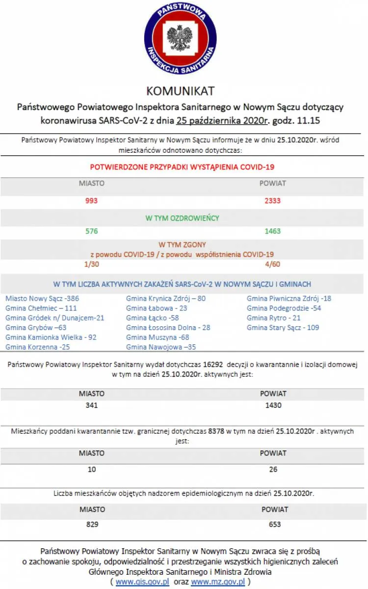 Subregion sądecki: Pond 190 kolejnych zakażeń wirusem SARS-CoV-2