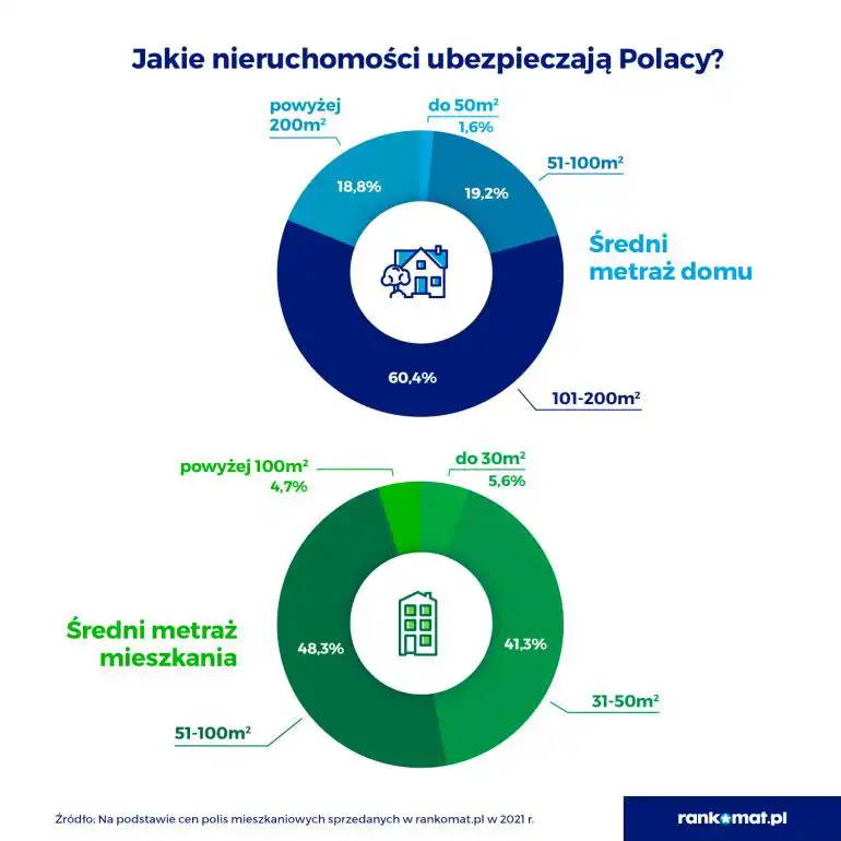 Eksperci rankomat.pl przeanalizowali polisy mieszkaniowe zakupione w 2021 roku przy pomocy porównywarki nieruchomości. Z danych zebranych w raporcie RanKING wynika, że przeciętny Polak ubezpiecza nieruchomość o powierzchni powyżej 51 metrów kwadratowych i wybudowaną ponad 25 lat temu. W domach mieszkają średnio co najmniej 4 osoby, w mieszkaniach nie więcej niż 2.