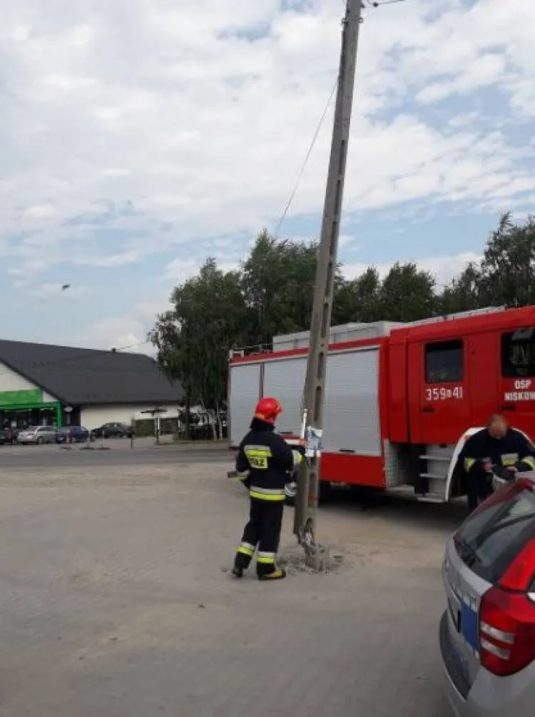 Strażacy sprawdzili słup przy użyciu detektora nie stwierdzając napięcia elektrycznego w jego pobliżu.
