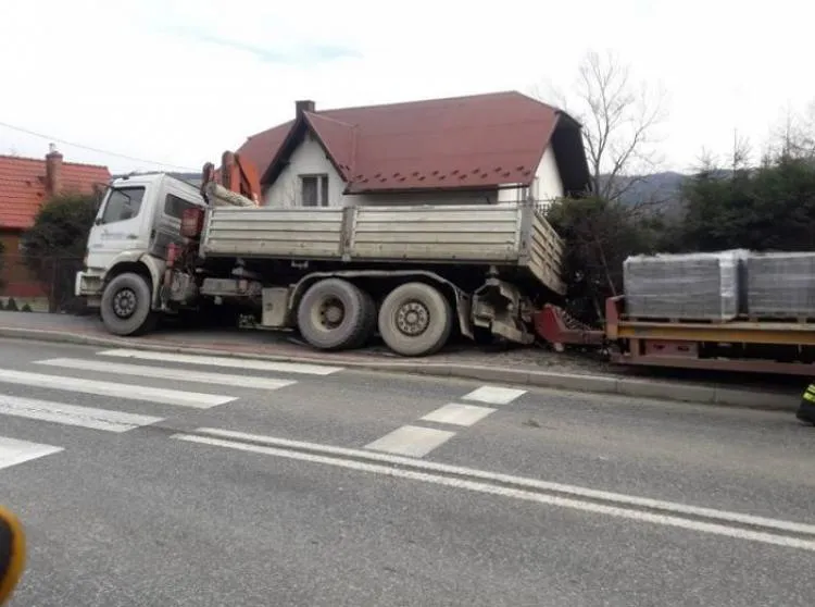 W Barcicach ciężarówka uderzyła w ogrodzenie posesji