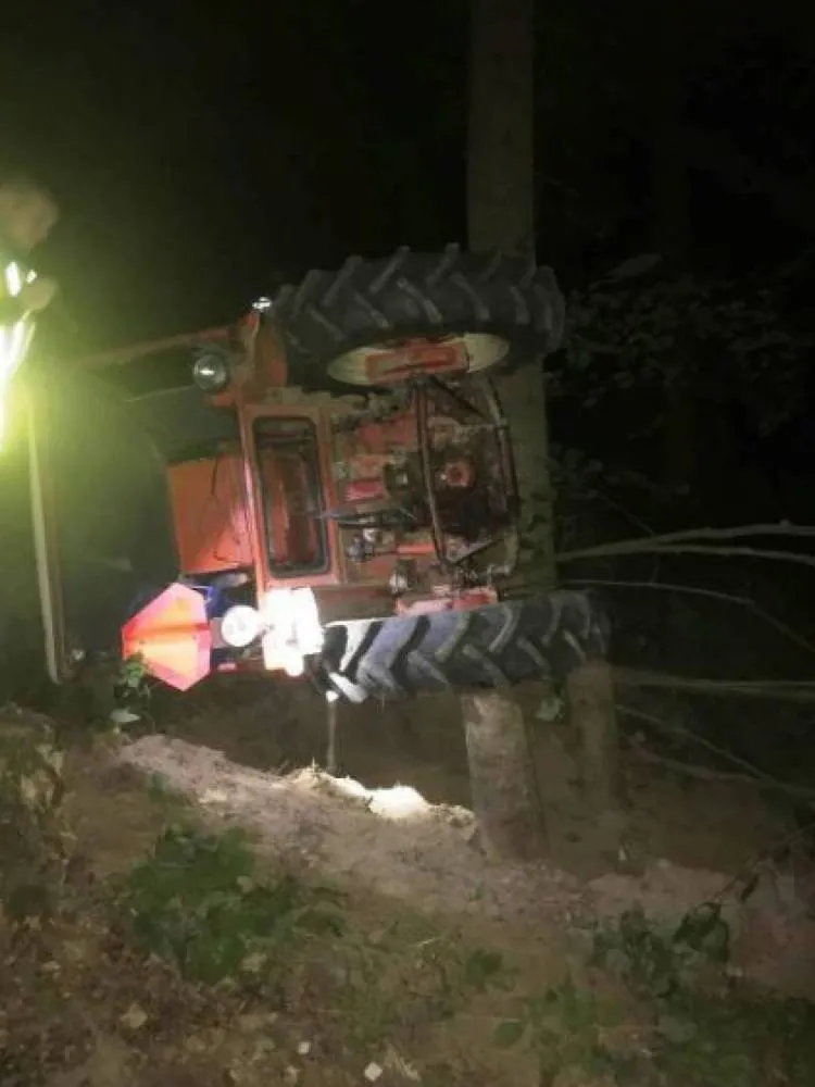 W wyniku zdarzenia ciągnik znajdował się w pozycji na boku oparty o drzewo, a kierujący nim mężczyzna w odległości ok. 1m od maszyny.