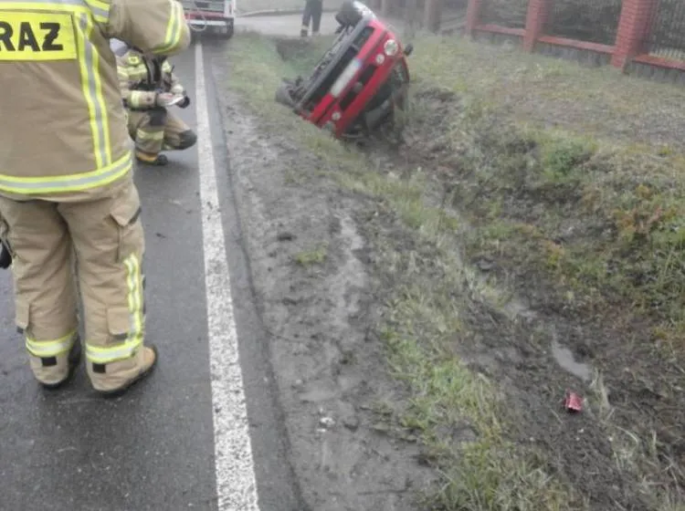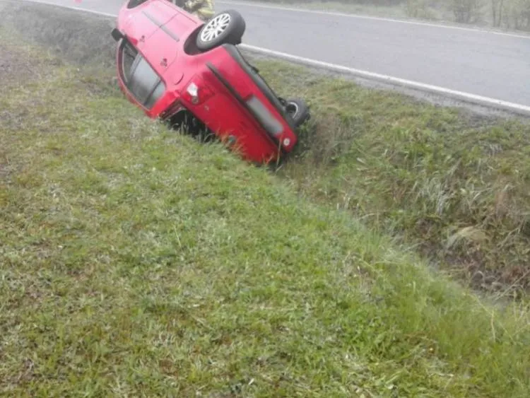W konsekwencji zdarzenia wylądował w rowie oparty o dach i prawy bok.