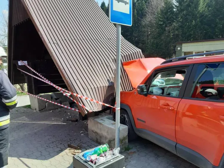 Wczoraj (8.04.2019r.) przed południem w Kosarzyskach, kierująca pojazdem osobowym marki Jeep Renegade Trailhawk z nieznanych przyczyn zjechała z jezdni i uderzyła w drewniany przystanek autobusowy uszkadzając go.