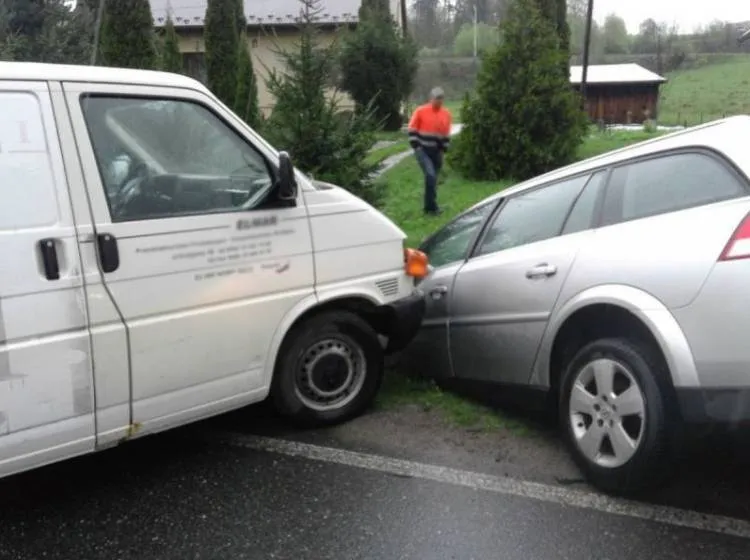Wczoraj (30.04.2019r.) po południu w Cieniawie samochód osobowy zderzył się z dostawczym.