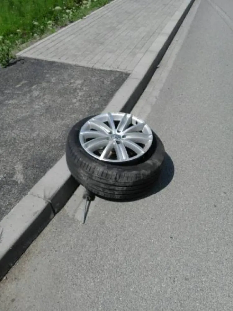 Siła uderzenia musiała być duża, bo Volkswagenowi urwało koło. Pojazd znajdował się na środku drogi blokując ruch innych pojazdów. Dlatego na czas prowadzonych czynności droga została całkowicie zablokowana.