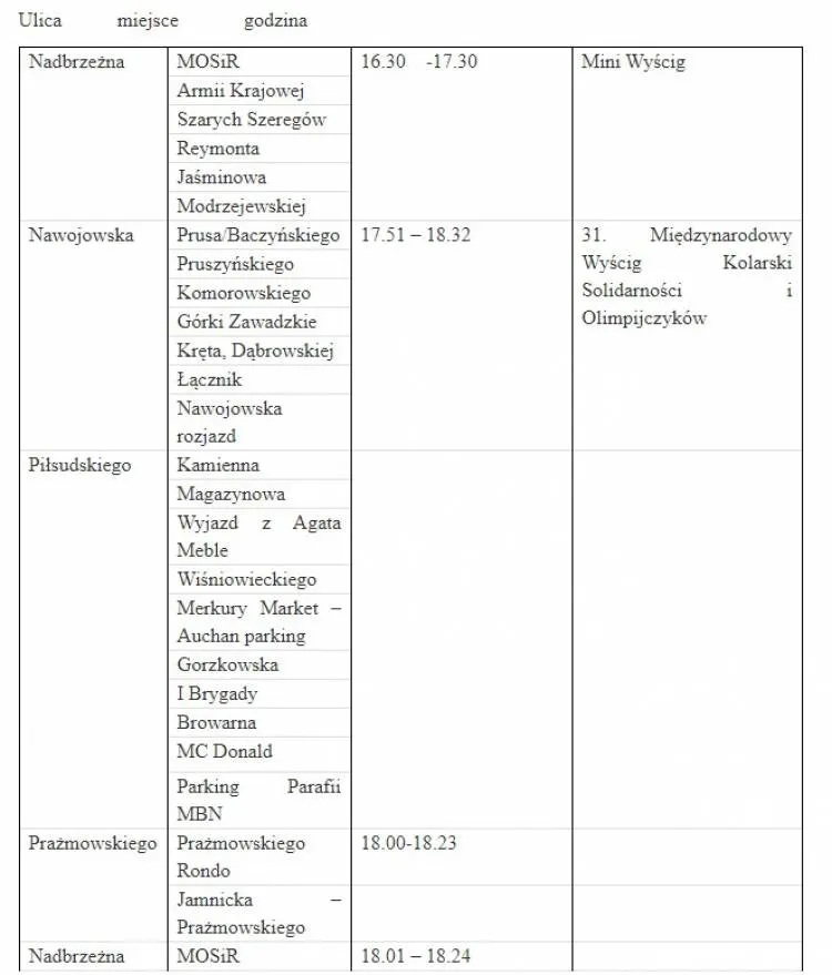 Zmieniła się także trasa wyścigu nie będzie przejazdu ul. Lwowska – Rynek – Bulwar Narviku – Kilińskiego.